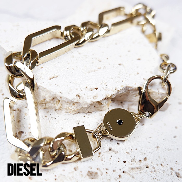 Dieselのステンレススチール製チェーンブレスレット。長袖・半袖問わずお手元をおしゃれに着飾ります