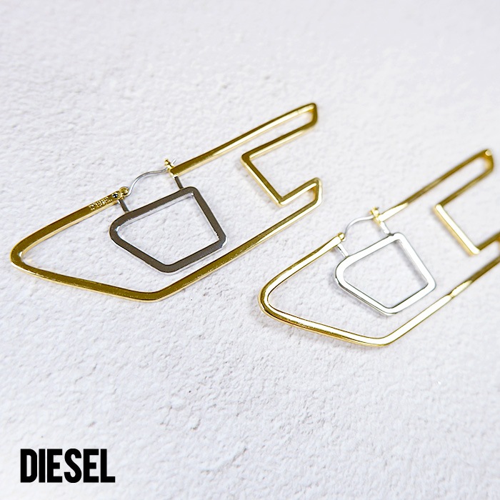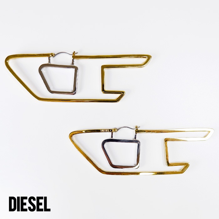 ディーゼル DIESEL ロゴ ピアス 両耳用 メンズ レディース ユニセックス シルバー ゴールド フープピアス DX1364931