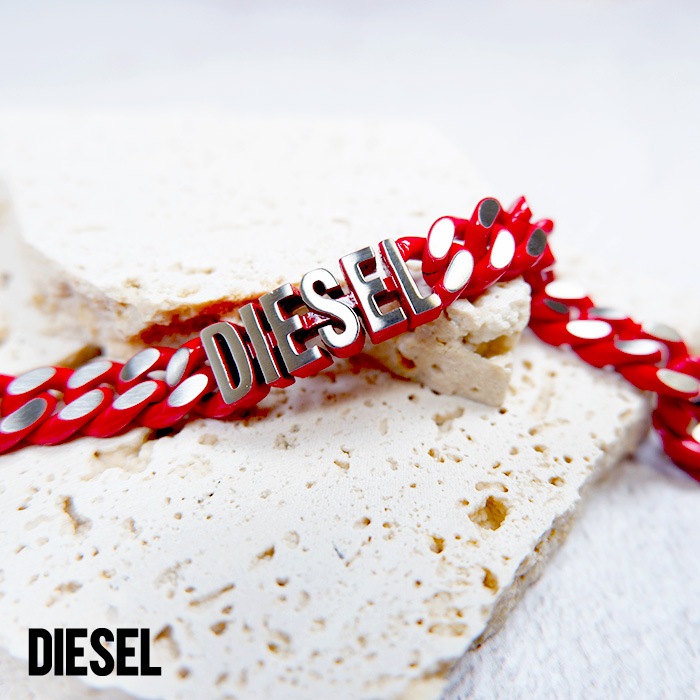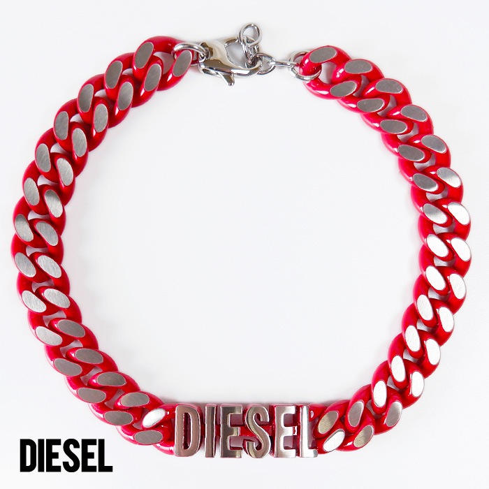 ディーゼル DIESEL ロゴ ブレスレット メンズ レッド シルバー チェーン DX1415040