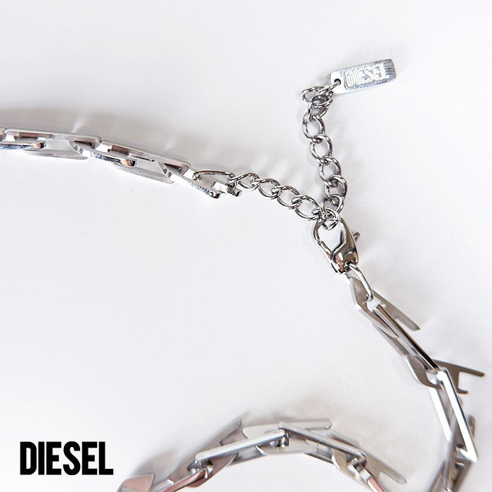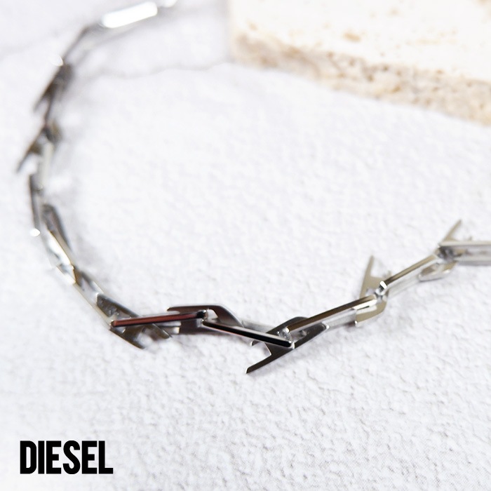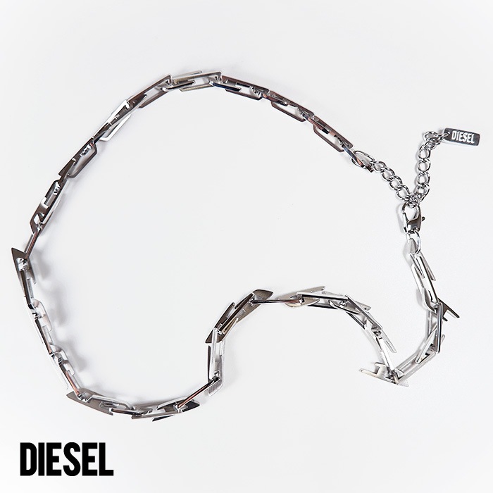 Dieselのステンレススチール製ネックレス。シンプルなデザインが胸元をおしゃれに着飾ります。